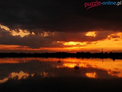 Puzzle Nad, Zachód, Słońca , Jeziorem
