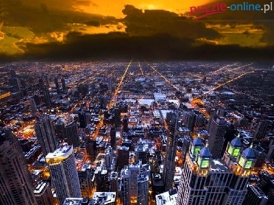 Puzzle Nad, Zachód, Słońca, Miastem