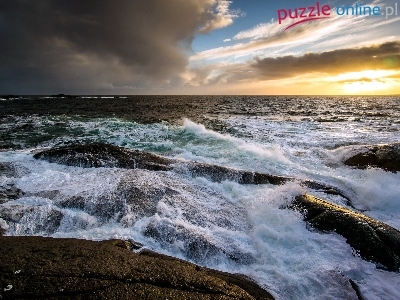 Puzzle NadciÄ…gajÄ…ce, Morze, Fale, Chmury