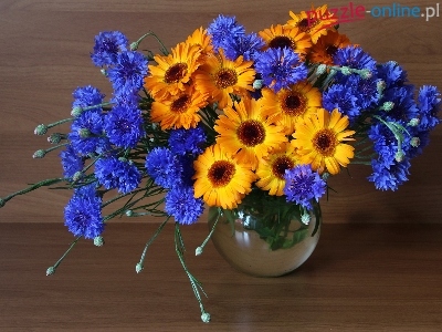 Nagietek, Deski, Bukiet kwiatów, Chabry, Wazon