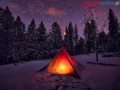Puzzle Namiot, Zima, Las, Gwiazdy