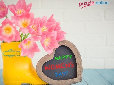 Kalosz, Serce, Happy Womens Day, Tulipany, Dzień kobiet, Bukiet, Napis