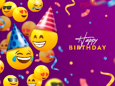 Urodziny, Happy Birthday, Napis, 2D, Emotikony