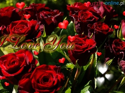 Puzzle Napis, Czerwone, Róże, Miłośc
