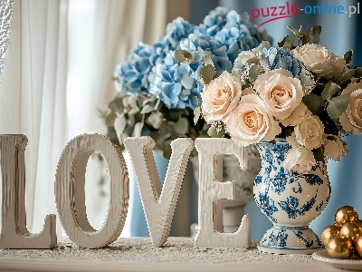 Bombki, Kompozycja, Wazon, Kwiaty, Róże, Love, Miłość, Napis
