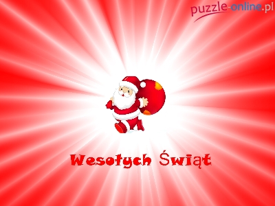 Puzzle Napis, Mikołaj, Promienie, Wesołych Świąt