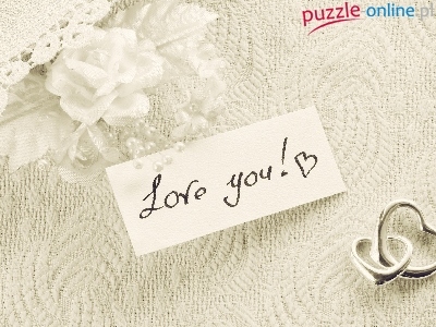 Kompozycja, Love you, Serduszka, Tkanina, Róża, Miłosne, Serwetka, Napis