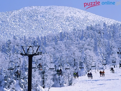 Puzzle Narciarze, Góry, Wyciąg Narciarski, Zima