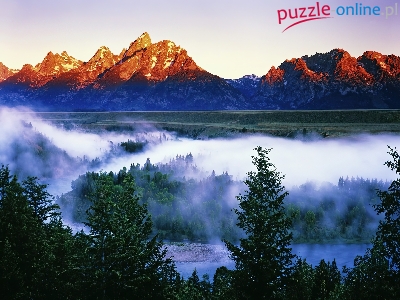 Góry, Narodowy, Las, Park, Grand Teton, Mgła