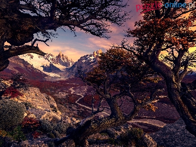 Droga, Jesień, Drzewa, Patagonia, Góry, Park Narodowy Los Glaciares, Argentyna, Andy