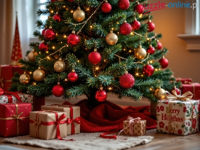 Bombki, Choinka, Boże Narodzenie, Złote, Prezenty, Czerwone
