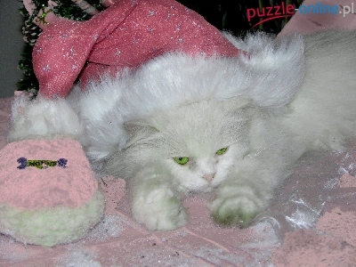 Puszysty, Biały, Kocik Mikołaj, Świąteczne, Boże Narodzenie, Bałwan Noc, Drzewa, Kot, Komin, Księżyc Norweski, Kot, Leśny Kakao, Mikołaj, Choinka, Święty, Ciastko, Okulary Boże Narodzenie, choinka Prezenty, Sanie, 3D Choinka, Bombki, Fractalius Boże Narodzenie, choinka Biały, Kot Szklanka, Biały, Kot, Mleko Stroik, Zielone, Gałęzie, Ozdoby Bombki, Wstążka Ozdoby, Srebrne, Szyszki, Świąteczne