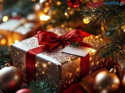 Puzzle Boże Narodzenie, Prezent, Bombki, Grafika
