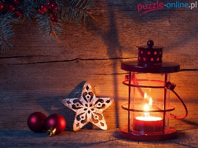 Gwiazdka, Boże Narodzenie, Gałązki, Świąteczna, Deski, Świeca, Drewniana, Kompozycja, Lampion, Bombki