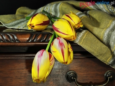 Puzzle Narzuta, Kolorowe, Tulipany, Skrzynia