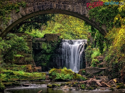 Newcastle, Anglia, Rośliny, Jesmond Dean Waterfall, Drzewa, Kamienie, Wodospad, Most
