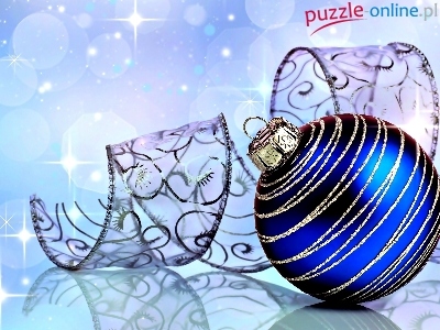 Niebieska, Wstążka, Boże Narodzenie, Dekoracje, Bombka