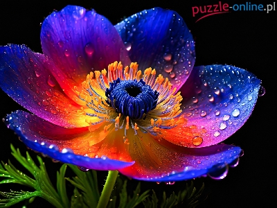 Puzzle Krople, Kwiat, Różowo-niebieski