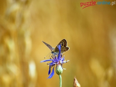 Puzzle Niebieski, Motyl, Modraszek, Kwiat