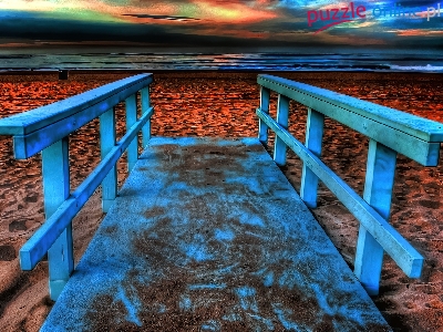 Puzzle Niebieski, Morze, Plaża, Mostek