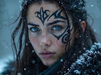 Kobieta, Niebieskie, Brunetka, Tatuaż, Oczy