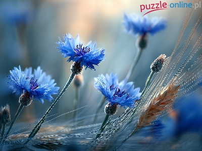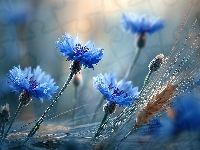 Zboże, Kłosy, Chabry, Niebieskie, Grafika AI, Kwiaty