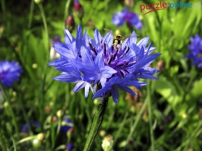 Kwiat, Chaber, Niebieski, Łąka Chabry, Maki, Rozmyte tło Zboże, Pole, Chabry Chaber, Niebieski, Kwiat, Rozmyte tło Łąka, Małgorzata Rawicka, Maki, Malarstwo Chabry, Kwiaty, Zboże Zielone, Niebieski, Chaber, Tło