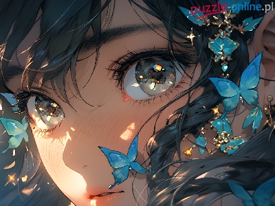 Twarz, Niebieskie, Dziewczyna, Anime, Motyle