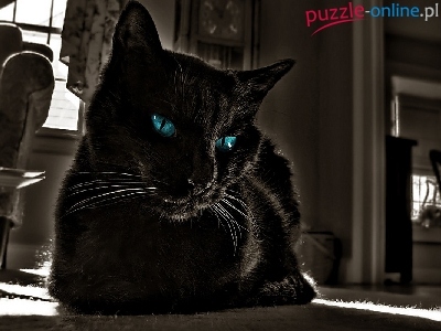 Puzzle Niebieskie, Czarny, Kot, Oczy