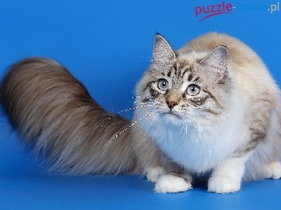 Puzzle Niebieskie, Puszysty, Kot, Tło