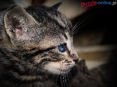 Puzzle Niebieskie, Mały, Kotek, Oko