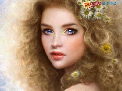 Puzzle Niebieskie, Dziewczyna, Kwiatki, Oczy
