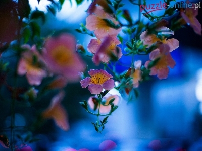 Puzzle Niebieskie, Różowe, Kwiatuszki, Tło