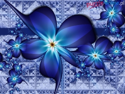 Puzzle Abstrakcja, Kwiaty, Niebieskie