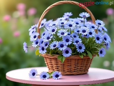 Puzzle Koszyk, Niebieskie, Kwiaty, Grafika AI