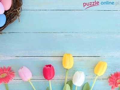 Kwiaty, Niebieskie, Pisanki, Gerbery, Wielkanoc, Tulipany, Deski