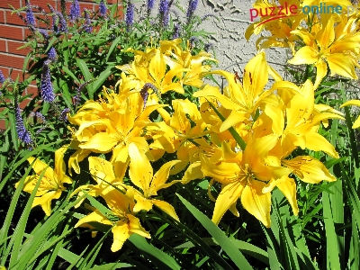 Puzzle Niebieskie, Zółte, Lilie, Szafirki