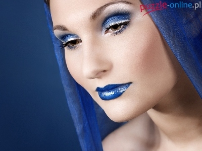 Puzzle Niebieskie, Kobieta, Makijaż, Usta