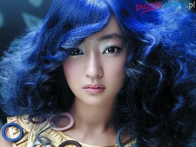 Puzzle Niebieskie, Kobieta, Makijaż, Włosy