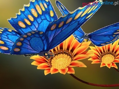 Puzzle Motyle, Niebieskie, Kwiaty