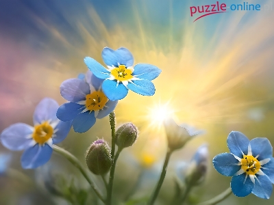 Słońce, Niebieskie, Niezapominajki, Grafika, Kwiaty
