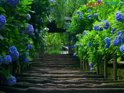 Puzzle Niebieskie, Stare, Schody, Hortensja