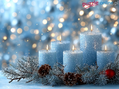 Grafika AI, Świece, Niebieskie, Gałązki, Świąteczne, Szyszki