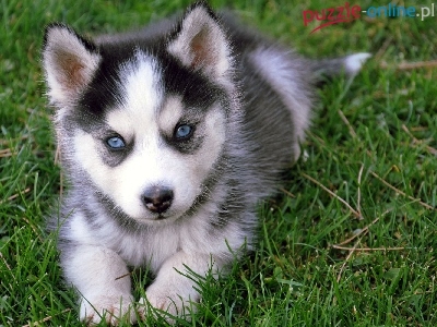 Puzzle Niebieskie, Siberian Husky, Szczeniak, Oczy