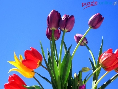 Puzzle Niebieskie, Kolorowe, Tulipany, Niebo