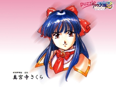 Puzzle niebieskie włosy, Sakura Wars, kokarda