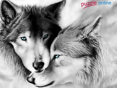 Puzzle Niebieskie, Dwa, Wilki, Oczy