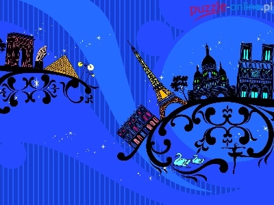 Zabytki, Niebieskie tło, Grafika, Paryż, Wieża Eiffla