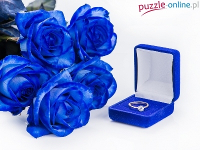 Zaręczyny, Niebieskie, Pudełko, Róże, Miłosne, Bukiet, Pierścionek