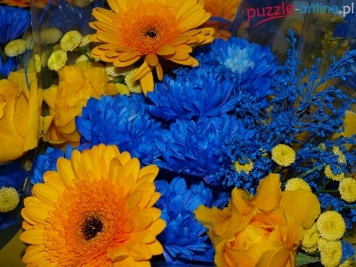Puzzle Żółtych, Bukiet, Niebiesko, Kwiatów
